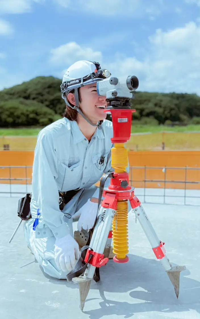 現在は造成工事や舗装工事、災害復旧工事など幅広い現場に携わっています。自分が関わった仕事が完成して形に残ると、大きな達成感がありますし、地域に役立っていることを実感できます。職場は明るく、相談しやすい雰囲気です。経験豊富な先輩方がいつもサポートしてくれるので、挑戦しやすい環境だと思います。